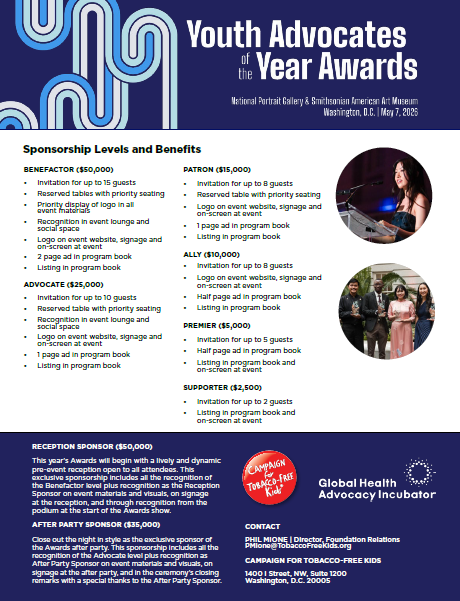Thank you for your interest in sponsoring the 2026 Youth Advocates of the Year Awards! Download our sponsorship packet for more information or review the benefits below.